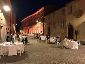 è la volta dell’aperitivo, al belvedere Valdaso, che anticipa la cena sotto le stelle (20:45), con piatti dello chef Gianmarco di Girolami abbinati alle produzioni del Consorzio Vini Piceni. Una serata veramente spettacolare, ambientata nella scenografica piazza del paese. Il “dress code blu” è d’obbligo! Infatti, per partecipare all’esclusivo convivio è necessario vestirsi di blu, nelle diverse tonalità di questo elegante colore.